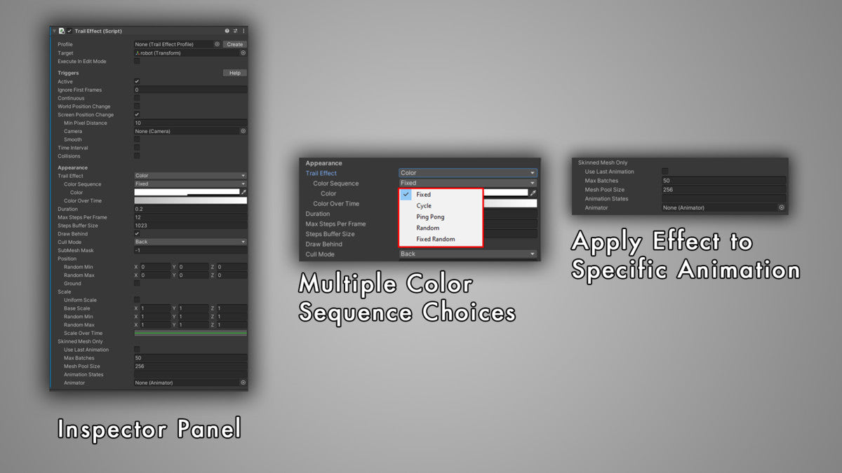 ✓ Works with any 3D object and animated skinned mesh renderers.